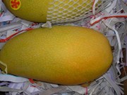 金煌芒原产于台湾,70年代由果农黄金煌先生选育而成,因其品质较好而备受欢迎,目前是海南主要种植的芒果之一。金煌芒个头较大,单个约1.5-2.5斤,果形长圆形,外表皮青绿或浅黄,熟后金黄,且散发浓郁的清香,果肉橙黄,核极薄,果肉厚实细致,无纤维,多汁软滑,口感极甜。