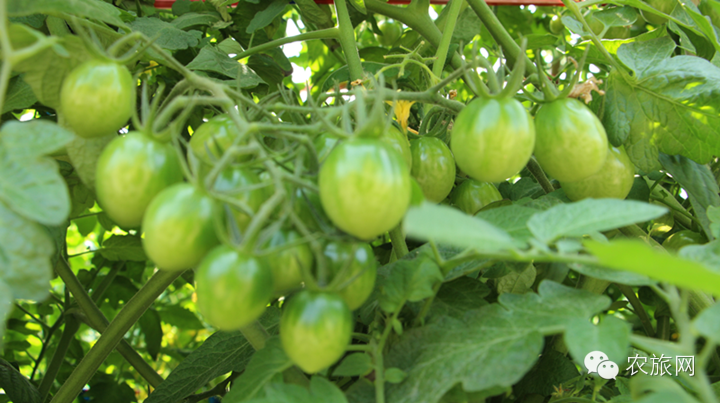 图为 千禧圣女果果园应用太阳能防虫灯防虫害