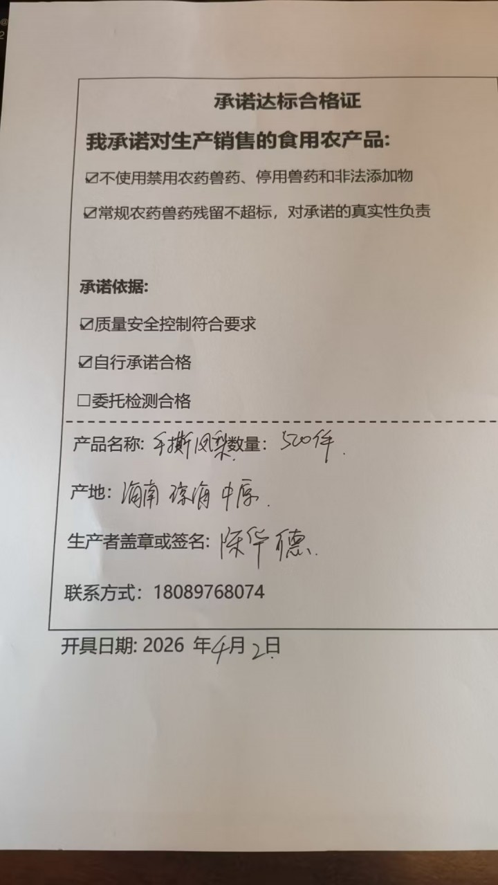 • 采收单位:海南健汇农超对接联合体