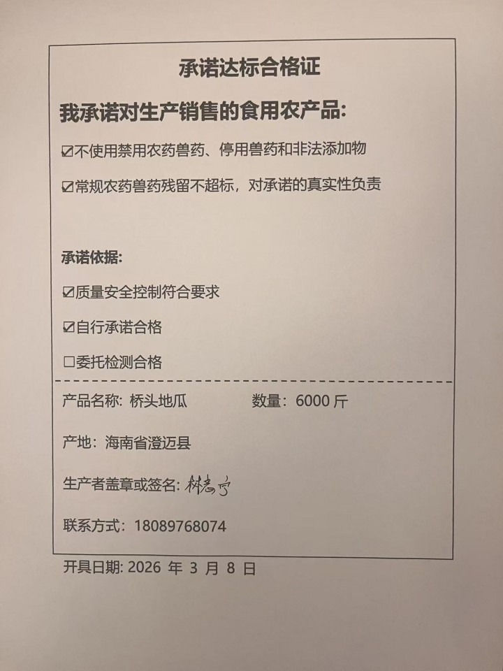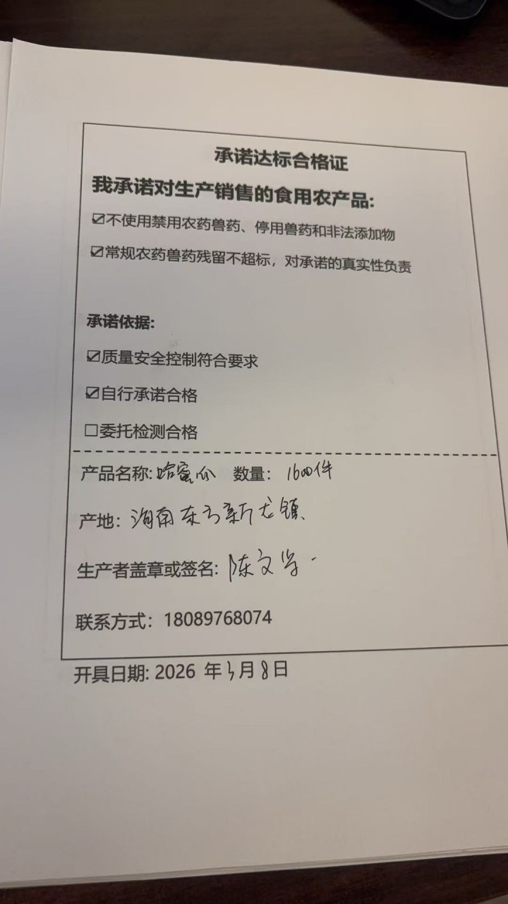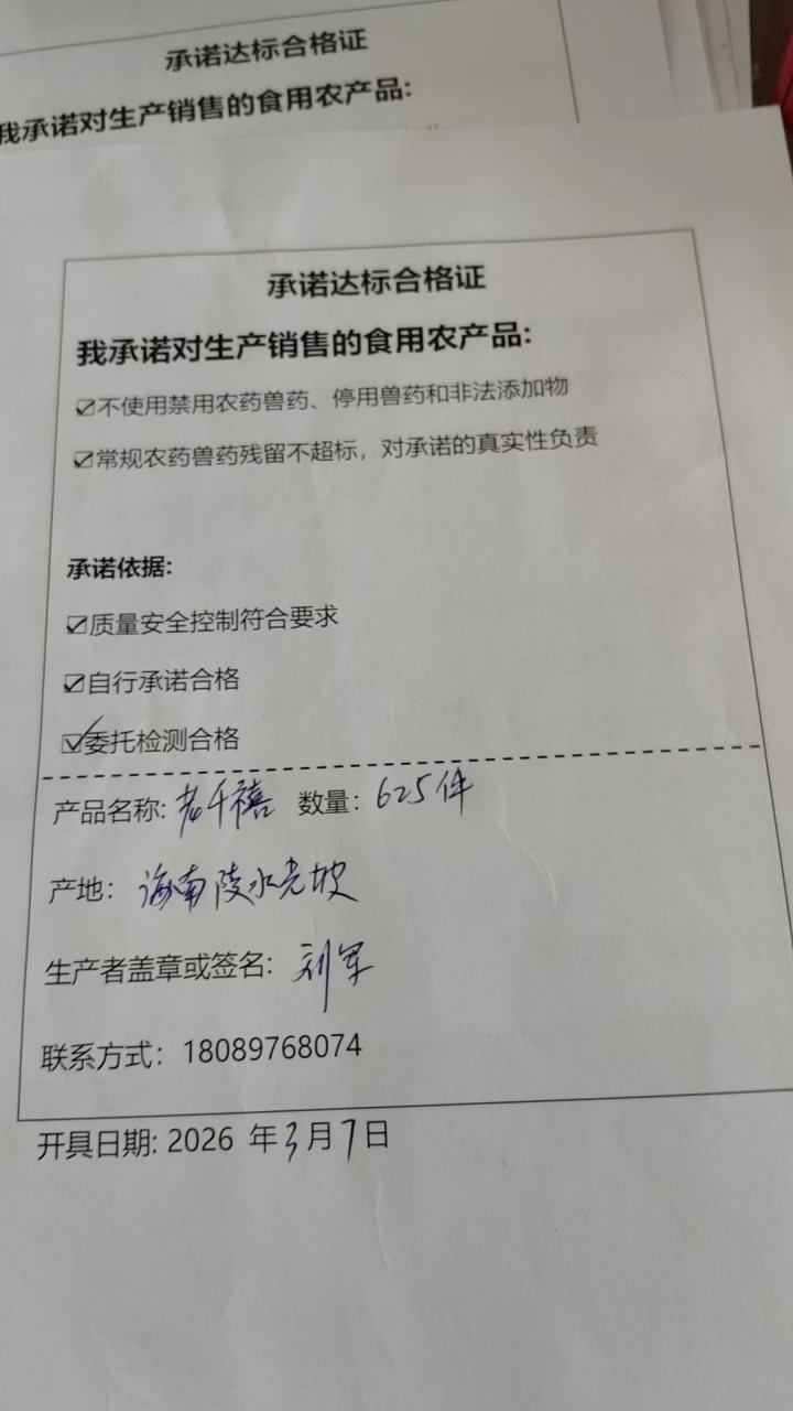• 采收日期:2026-03-08