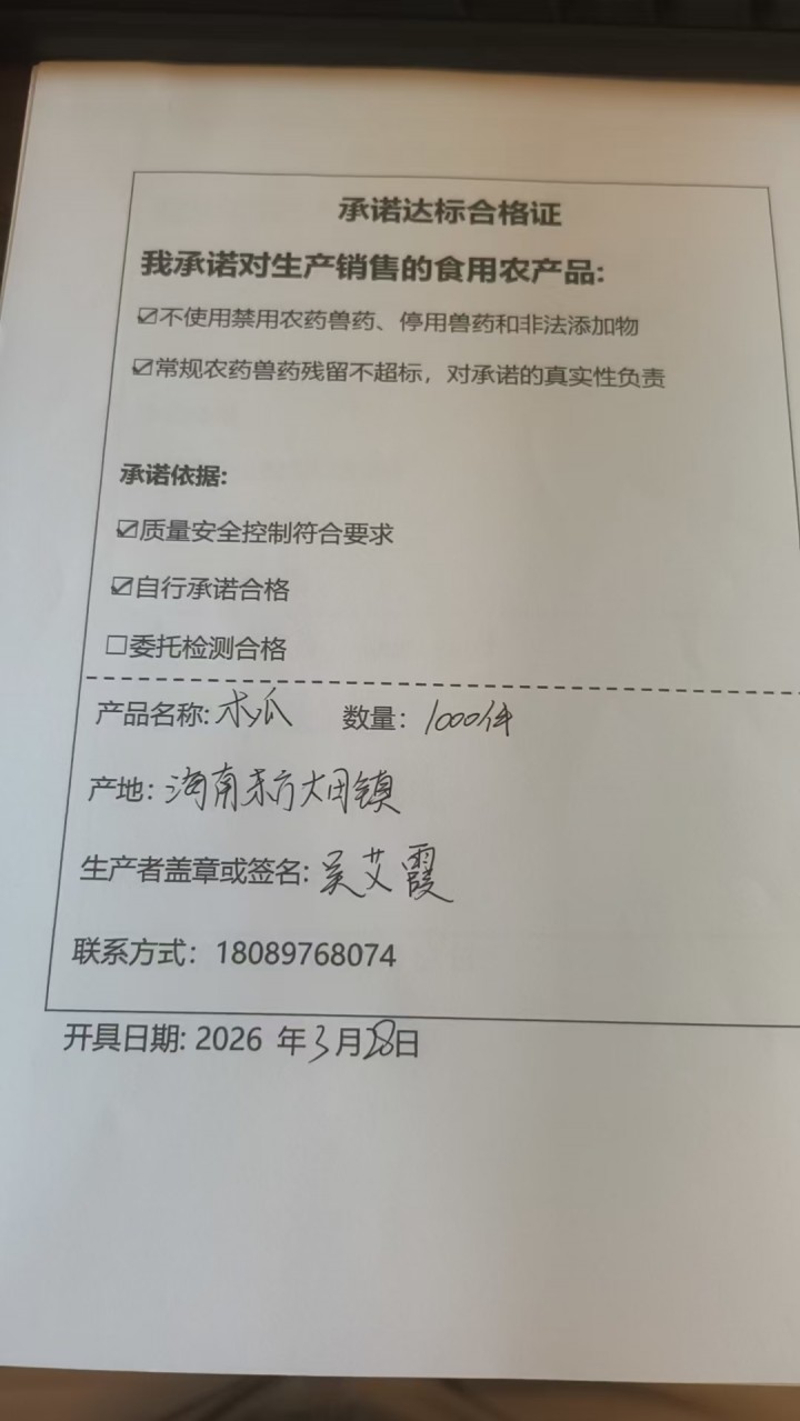 • 采收单位:海南健汇农超对接联合体