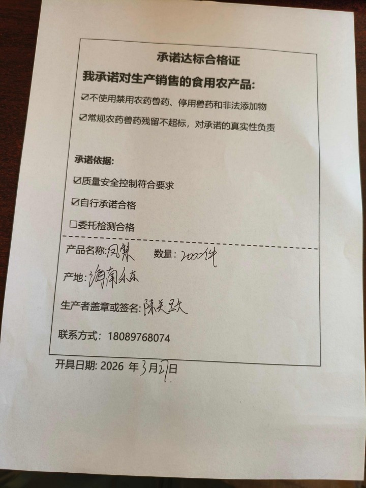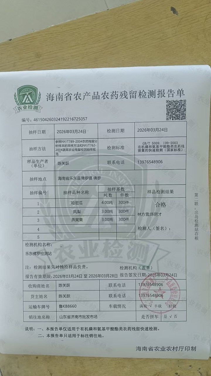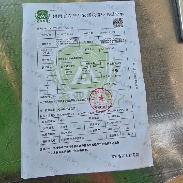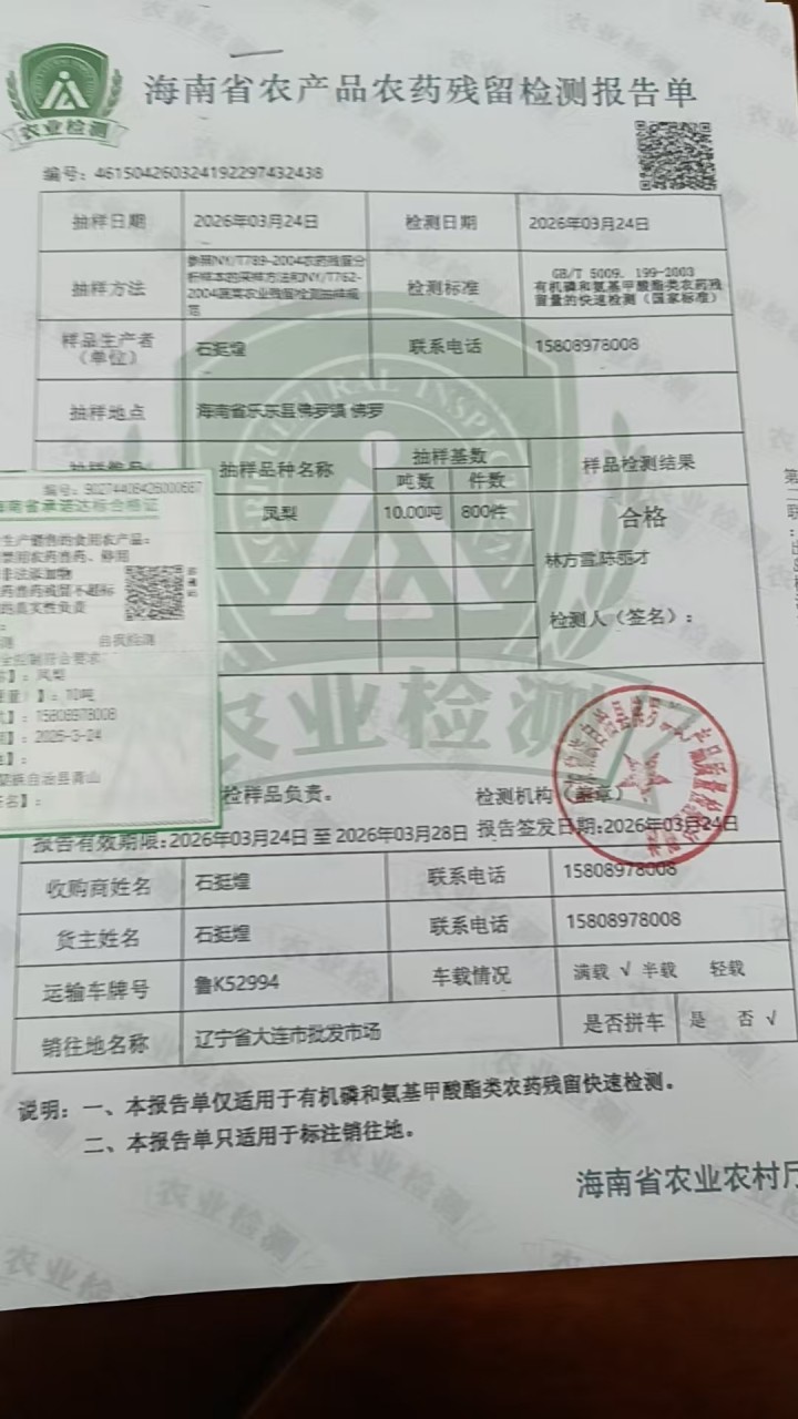• 采收单位:鲁商山港(海南)供应链有限公司