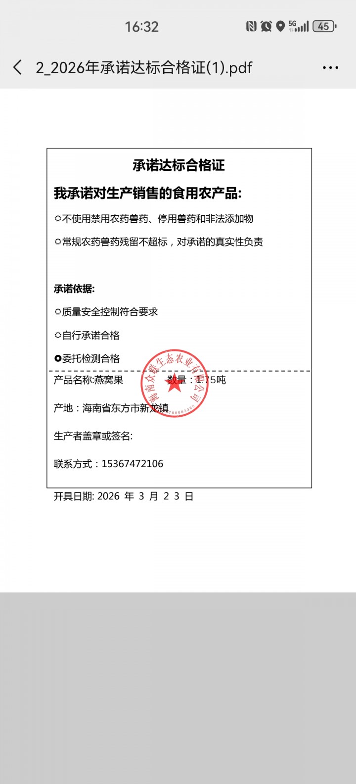 • 采收日期:2026-03-23