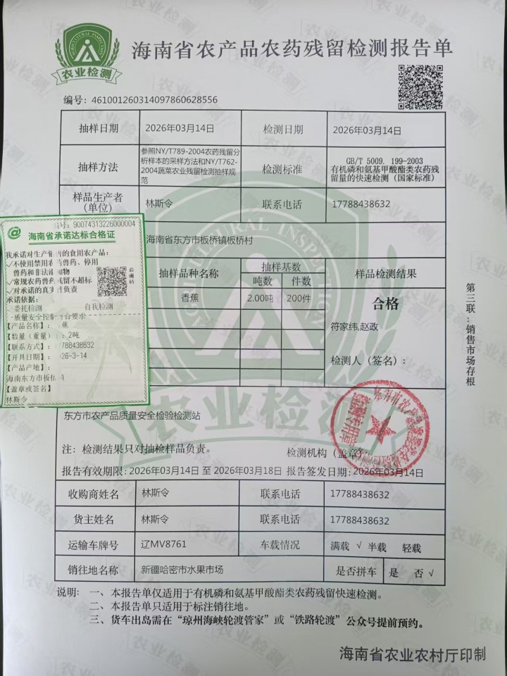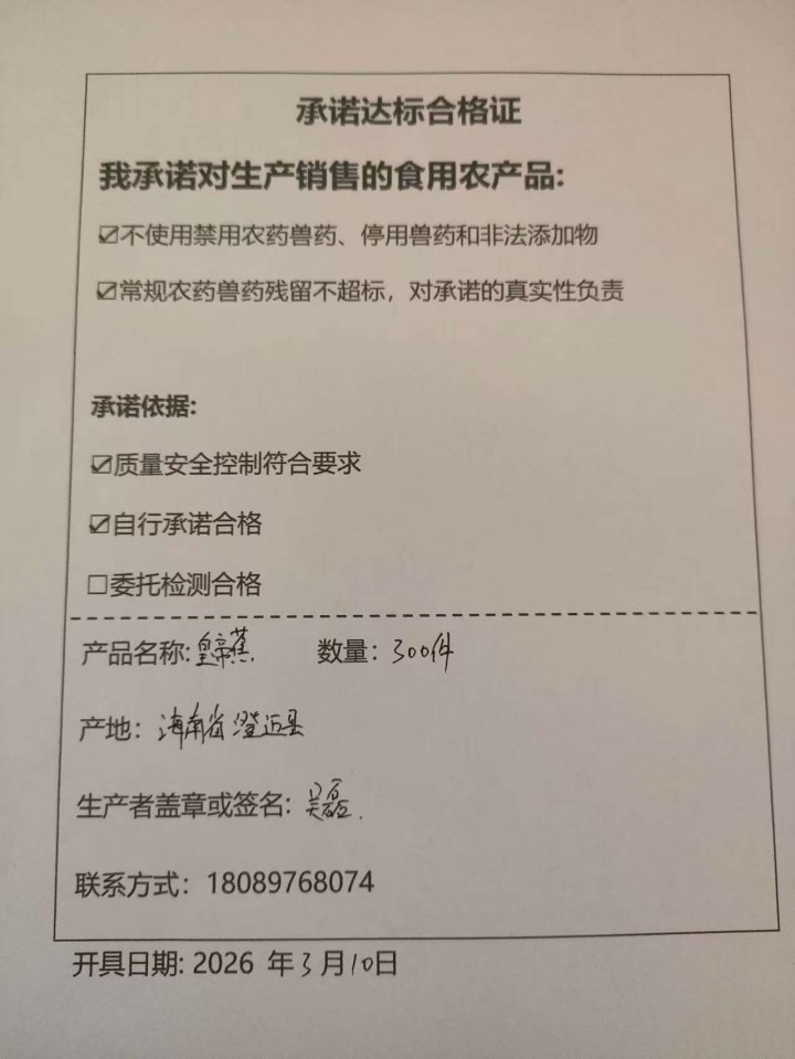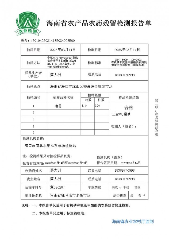 • 采收单位:鲁商山港(海南)供应链有限公司