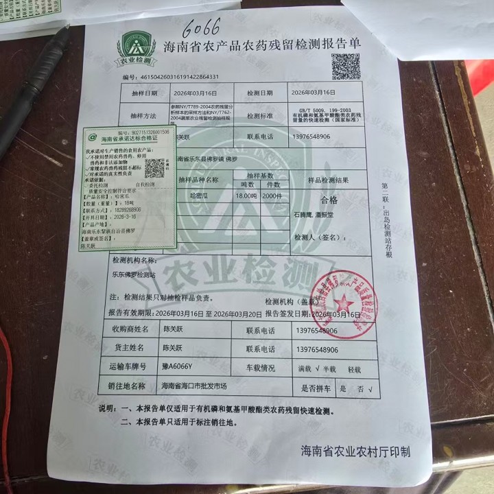 - 采收单位:鲁商山港(海南)供应链有限公司