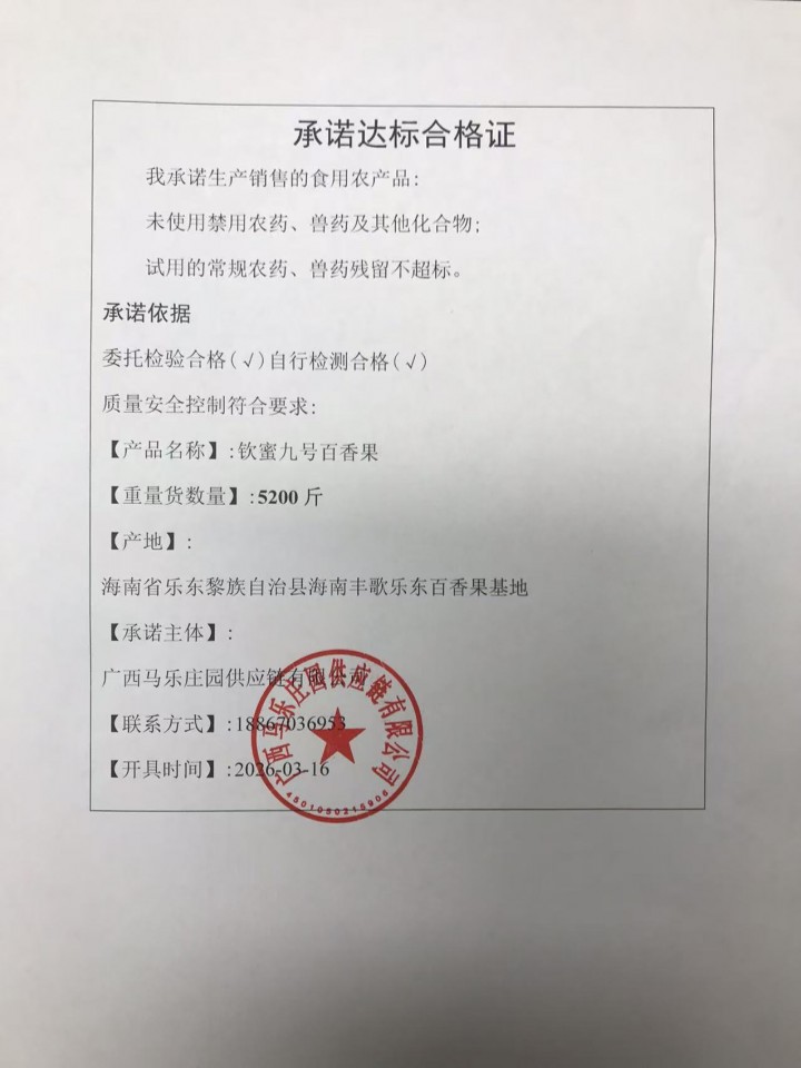 • 种植责任人:广西马乐庄园供应链