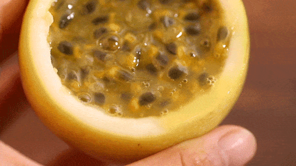 它并不似以往百香果的酸甜口感,而是甘甜如蜜,金黄色的果肉让人看着就垂涎欲滴,根本不用加蜂蜜,一口一勺直接甜到心尖尖!