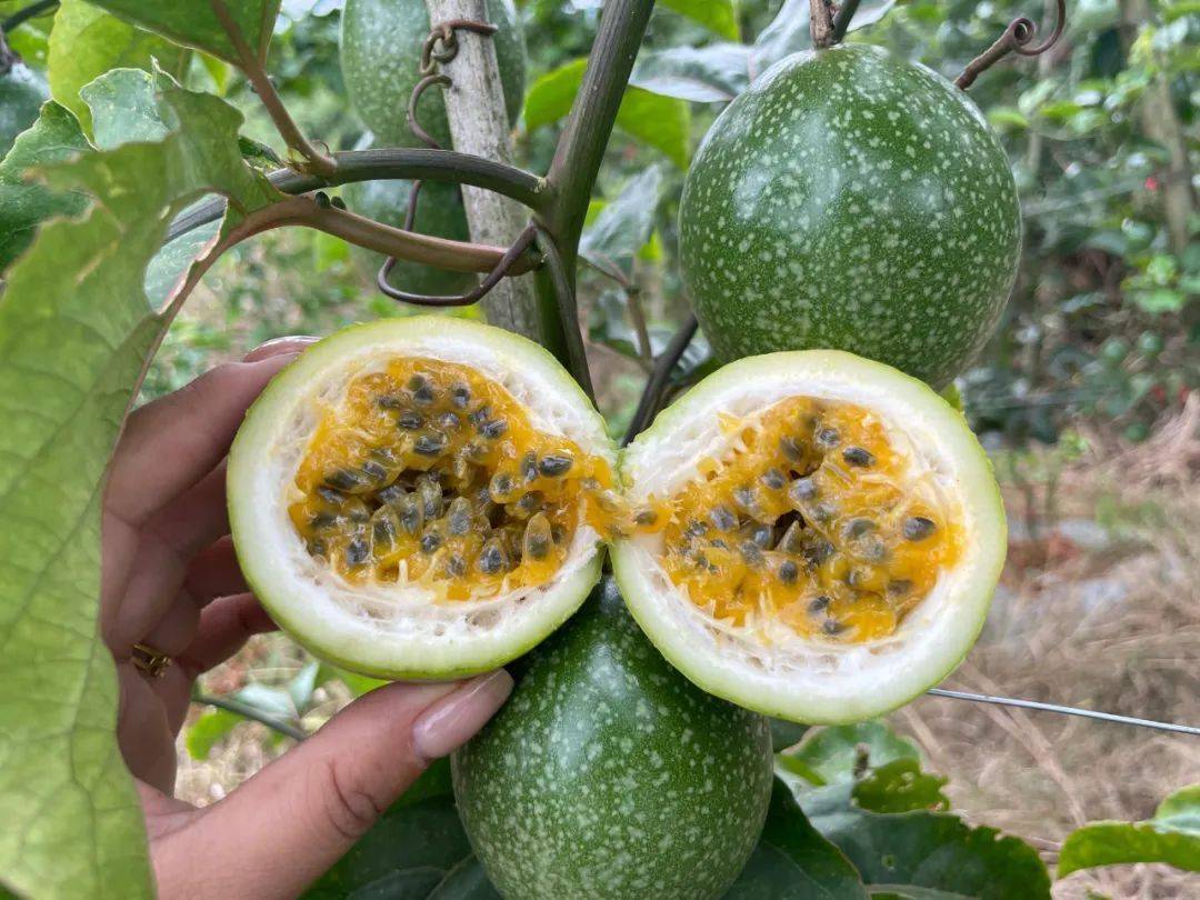 海南热量和光照充足,年降水量也非常丰富。优越的自然条件助力百香果的生长,让百香果在藤上充分累积糖分,空气中都弥漫着香甜的气味。