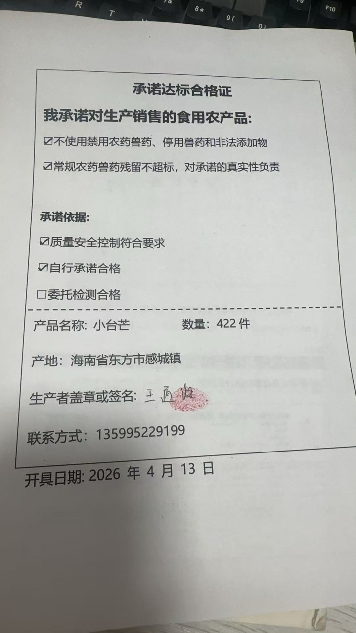 - 种植品种:台农芒