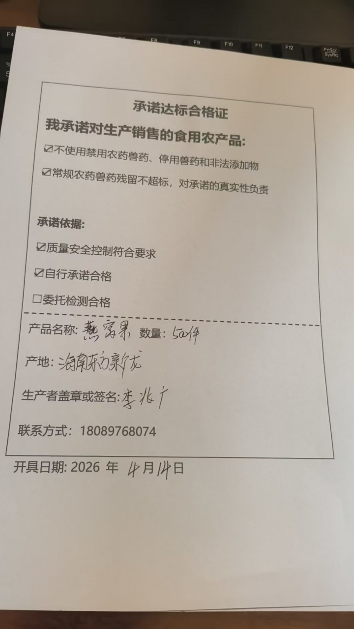 - 采收单位:海南健汇农超对接联合体