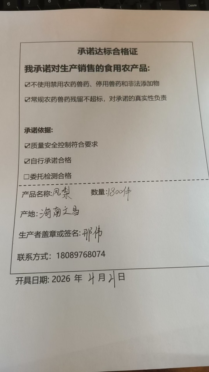 坚持凤梨自然成熟的规律,不打催熟剂和膨大剂;