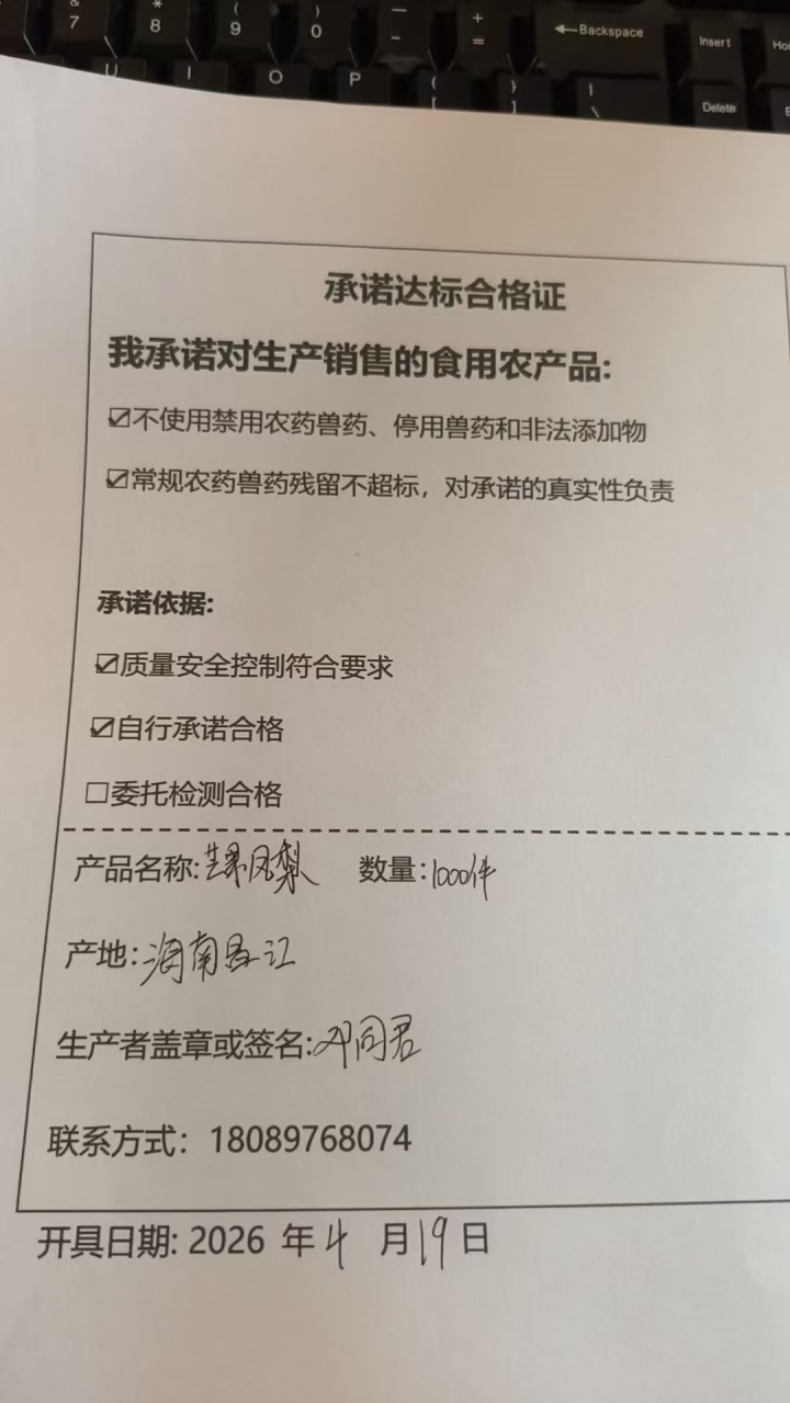 • 采收单位:海南健汇农超对接联合体