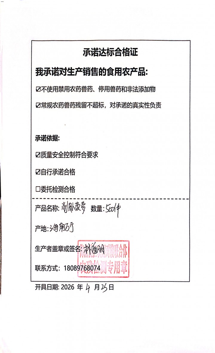 - 采收单位:海南健汇农超对接联合体