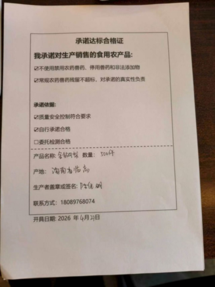 - 采收单位:海南健汇农超对接联合体